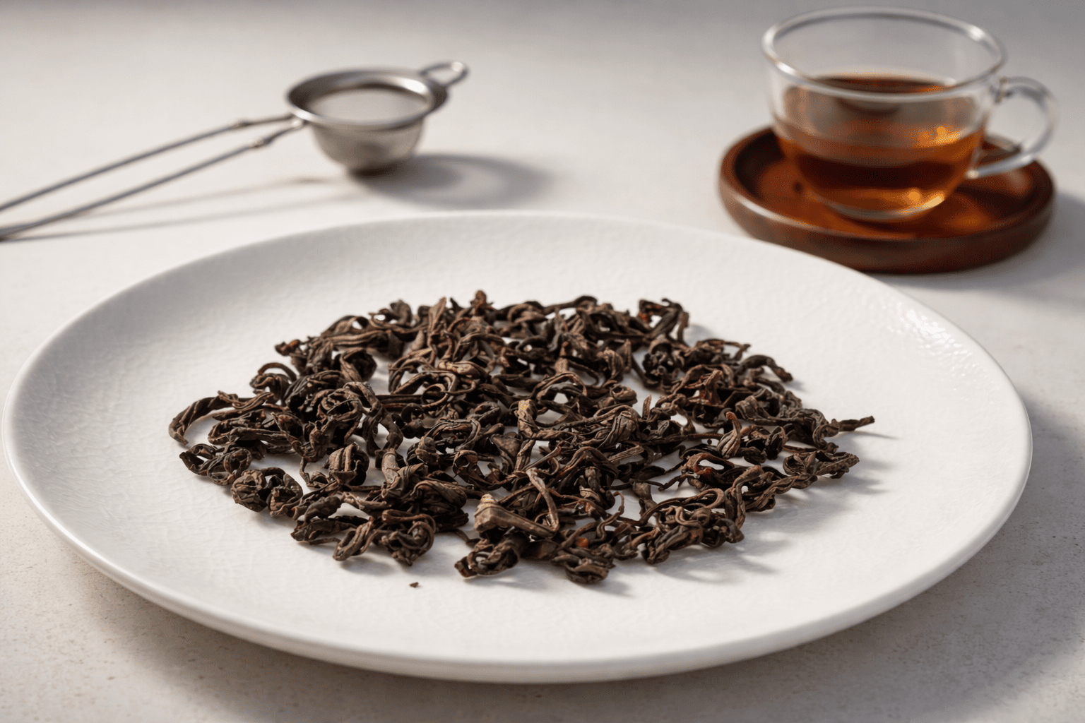 ⚗️ ქიმიური შემადგენლობა: კოფეინი: 30–60 მგ 8 უნცია ჭიქაზე (განსხვავდება დაყენების დროის მიხედვით); პოლიფენოლები (მათ შორის კატექინები და თეაფლავინები): მშრალი წონის 20–30%; ტენიანობა: < 6%; ეთერზეთები, რომელიც ხელს უწყობს არომატს