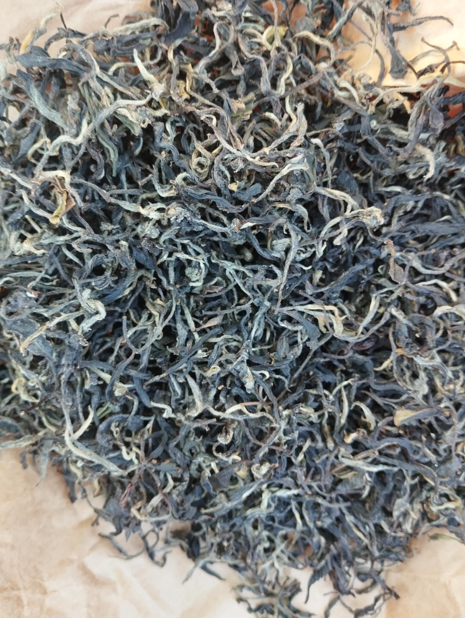 🌿 მშრალი ფოთლის გარეგნობა: მუქი ყავისფერიდან შავამდე ტონალობის ფოთლები, როგორც წესი, დაგრეხილი მთლიანი ან დატეხილები, ზოგჯერ ოქროსფერი წვერებით პრემიუმ პარტიებში.