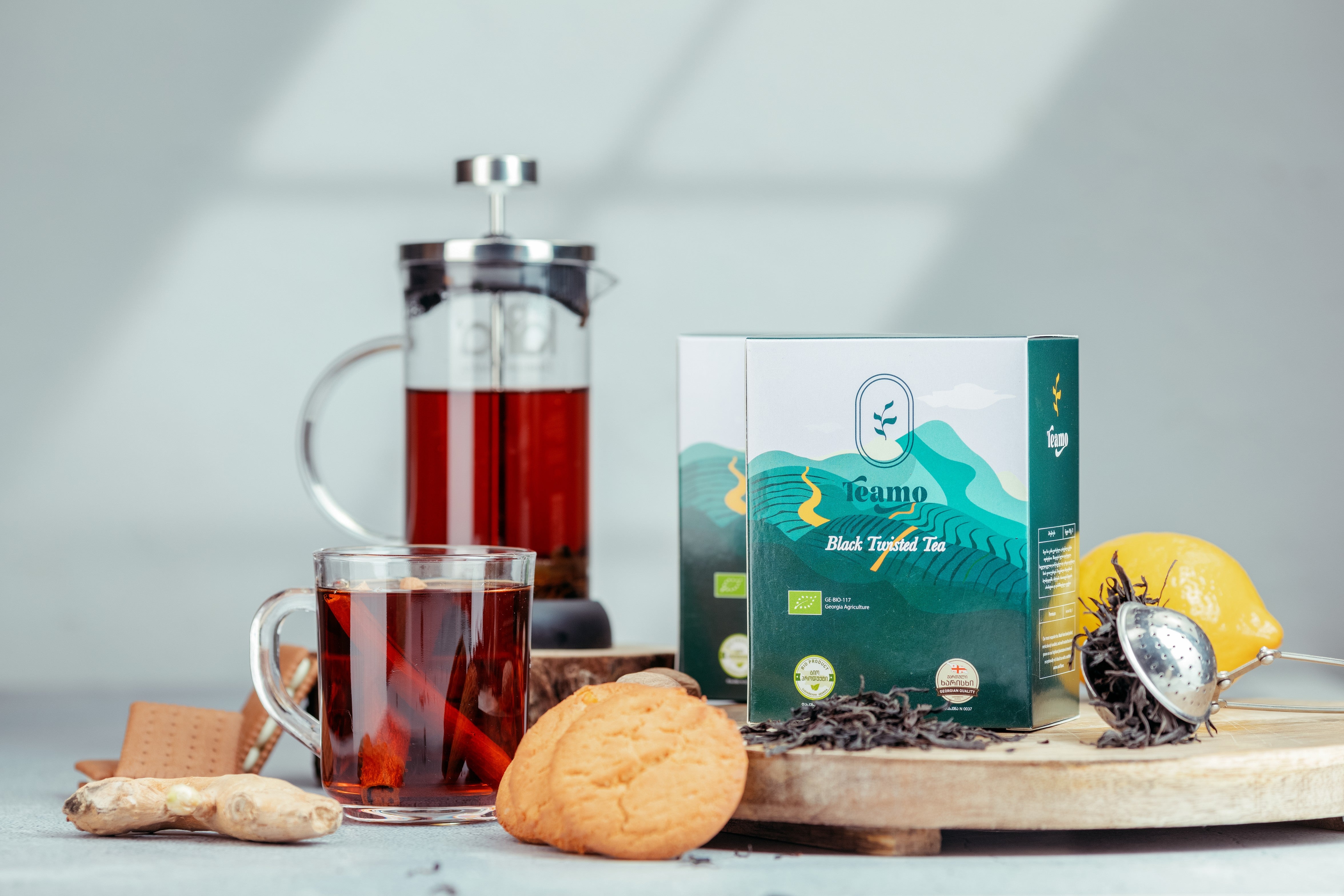 Teamo Black Twisted Tea is a refined, organic black tea grown in Georgia's Imereti highlands. Crafted through tradition and care, it offers a deep, aromatic infusion with a soft twist—perfect for tea lovers who seek purity, flavor, and a touch of Georgian magic in every cup.